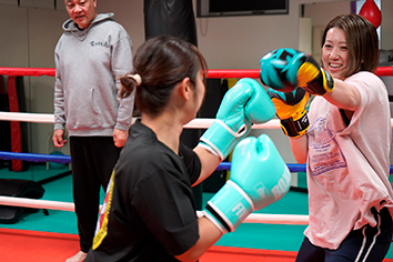 グローブがボロボロになるまでに3年、熱心にトレーニングに励んだ結果に道場生も大満足。次は何がいいかなど、アドバイスを聞く姿もみられた本日の昼キックも無事終了。